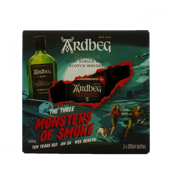 A fabulous pack of three top-drawer Ardbeg drams. The set includes Ardbeg Ten Year Old, Ardbeg Five Year Old Wee Beastie, and Ardbeg An Oa. Each of these bottles feature a hidden artwork hiding behind the label. Peel it off to see what spooky spectacle is awaiting.