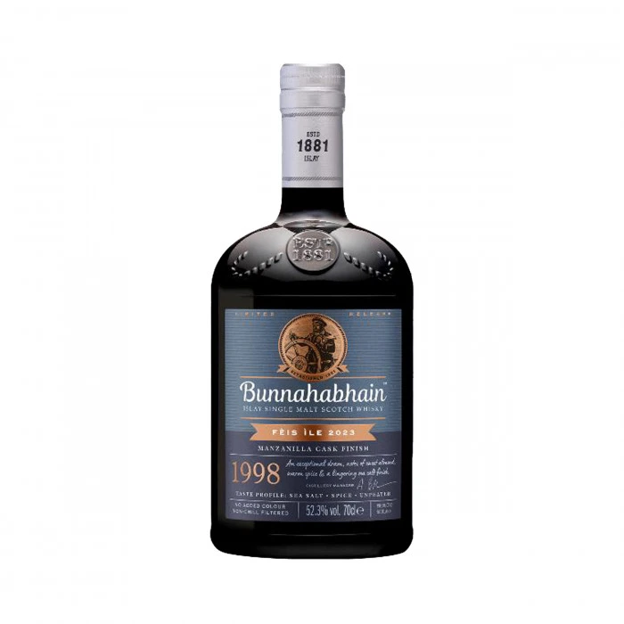 To mark the grand occasion of Feis Ile 2023, Bunnahabhain have released this exceptional example of their classic unpeated sherried style. Initially laid down in American oak casks in 1998, the expression was then finished in first-fill Manzanilla sherry casks for a further seven years. Manzanilla sherry is famed for its coastal, nutty characteristics, which pair beautifully with Bunnahabhain’s shared flavour. The result is a warmly welcoming dram, with notes of salt & spice, fitting for the best of celebrations.