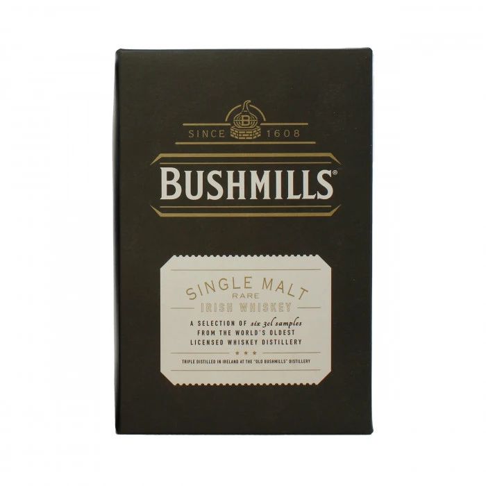 May we present the ultimate introduction to Bushmills Irish Whiskey. This six-piece 3cl set contains three expressions from their core range, 10 Year Old, 16 Year Old and 21 Year Old, as well as three extra-special limited editions. From the The Causeway Collection, we have 1991 Madeira Casks, 1997 Rum Casks and 2000 Port Casks. These three were bottled in 2022.