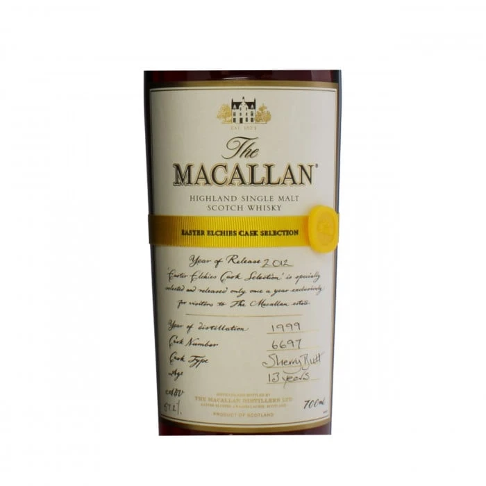 A covetable bottle from The Macallan, this 2012 edition is named for the Easter Elchies house on the Macallan estate.This special whisky was originally reserved only for those who made the journey to the estate in the Speyside region of Scotland. Aged for 13 years entirely in a Sherry butt cask, this limited edition single malt is one of only 400. Bottled at 57.2% abv.