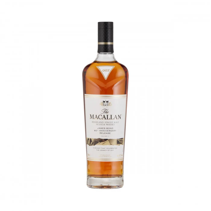 Released to celebrate the 60th anniversary of James Bond in cinema, this exceptional single malt whisky has been created by The Macallan Master Whisky Maker, Kirsteen Campbell, to reflect the character of James Bond. A robust force of nature defined by his Scottish heritage, Bond shares many a quality with The Macallan.